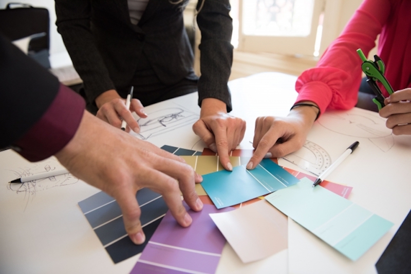 普段生活していると、中々壁材や床材など選ぶ機会がないので、どうやって選定を進めていけばいいのかわからず不安な方も多いと思います。基本的にはお客様から伝えられたイメージを元に、私たち(デザイン設計事務所)が壁紙や、タイル、フローリングなどをメーカーに問い合わせてサンプルをご用意いたします。