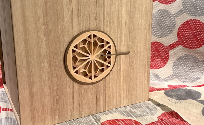 組子細工職人さんがイメージやたたき台を基に丁寧に組み上げた、ここにしかない足袋の組子細工は必見です。